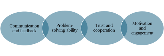 - Second, the findings revealed that leadership traits collectively influence virtual teams’ performance in four themes: (a) communication and feedback, (b) problem-solving, (c) trust and cooperation, and (d) motivation and engagement (see Figure 5).